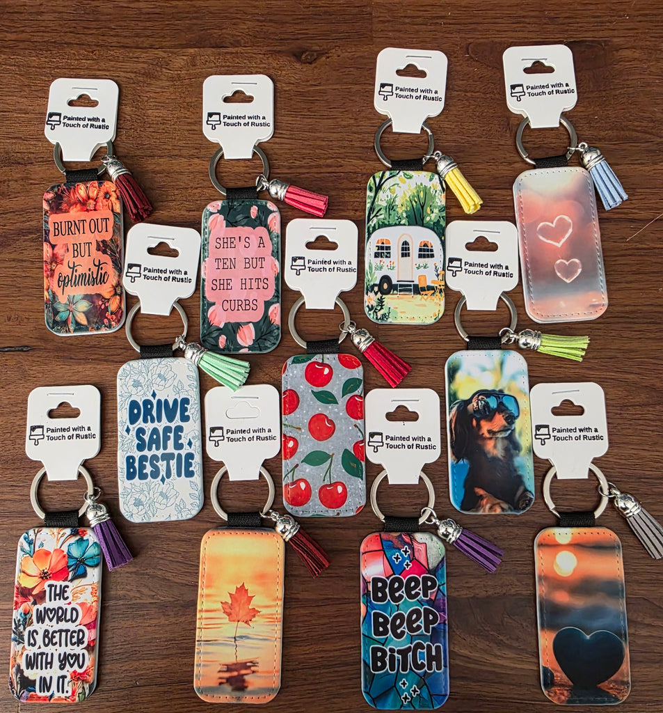 4.5" x 1.5" Sublimated Keychain. Assorted patterns available