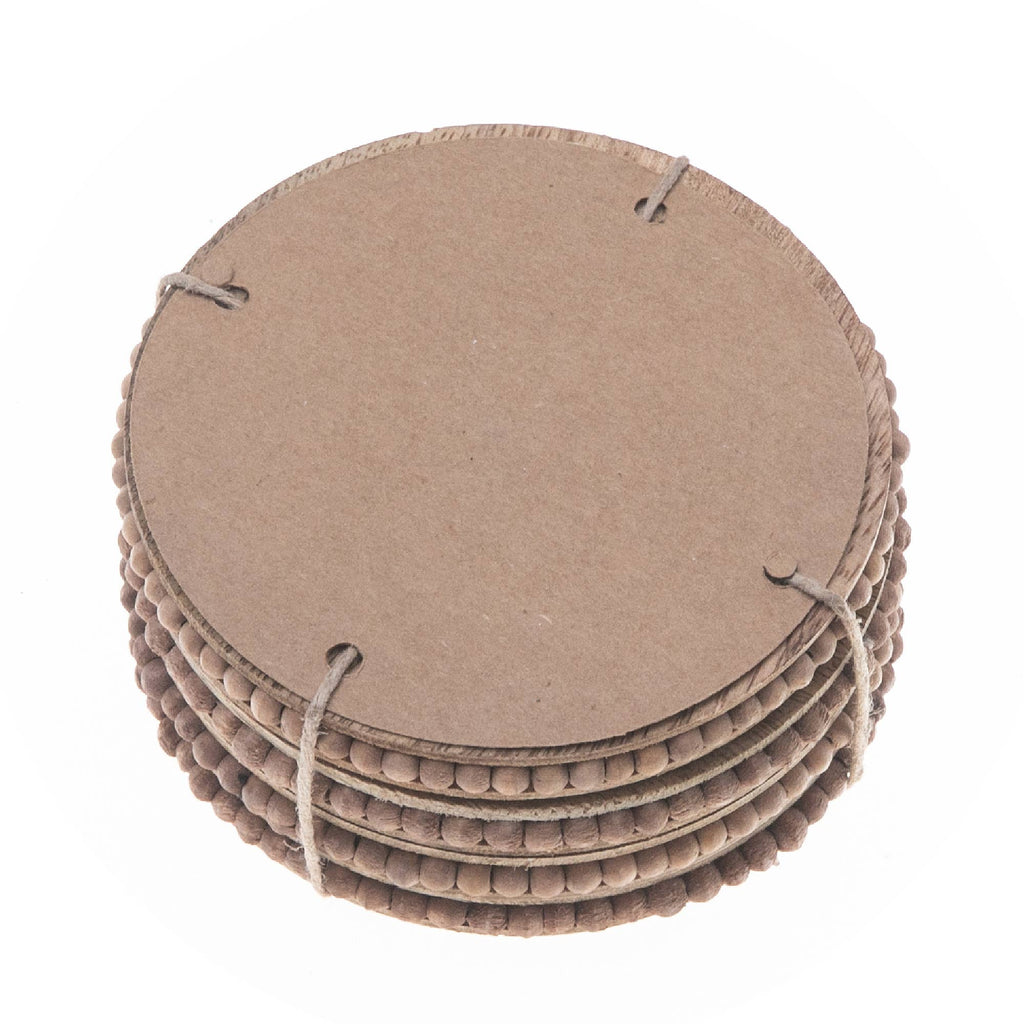 Set Of 4 Natural Beaded Round Coasters: Brown